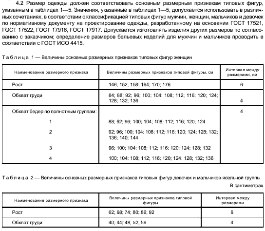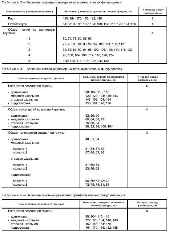 [13] По ГОСТам: 17522-72 «Типовые фигуры женщин»; 17521-72 «Типовые фигуры мужчин»; 17916-86 «Фигуры девочек типовые»; 17917-86 «Фигуры мальчиков типовые».