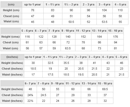 Таблица соответствия размеров детской одежды.