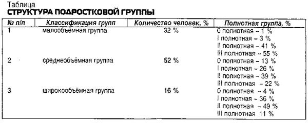 Основной характеристикой тела в предложенной классификации является метрический индекс, который характеризует количество подкожно-жировой клетчатки. По этому признаку выделено три группы: малообъёмная, среднеобъёмная и широкообъёмная группа (табл., рис. 2).