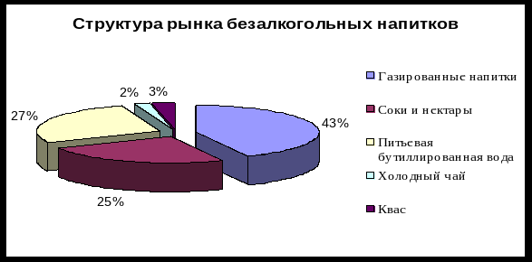 В целом Россия повторяет развитие зрелых рынков, где потребители всерьез озабочены вопросами сохранения молодости и здоровья и где наблюдаются высокие темпы роста продуктов, позволяющих поддерживать хорошее самочувствие и форму. Эту тенденцию как нельзя лучше иллюстрирует российский рынок безалкогольных напитков. Особой популярностью на рынке России в последнее время пользуются безалкогольные напитки – за счет своей способности утолять жажду, радовать потребителей приятным вкусом и не оказывать вредного влияния на человеческий организм. На протяжении последних нескольких лет российский рынок безалкогольных напитков демонстрирует высокие и устойчивые темпы роста. Такой успех связан с наблюдаемой в последнее время тенденцией смещения потребительских предпочтений в сторону напитков более полезных для здоровья, чем привычная газировка, а именно – минеральной воды и соков.