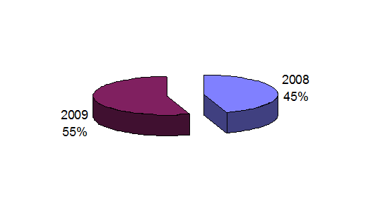 Диаграмма 1. Объем продажи рыбных консервов в натуральном выражении крупными и средними организациями оптовой торговли за 2008 и 2009 г.