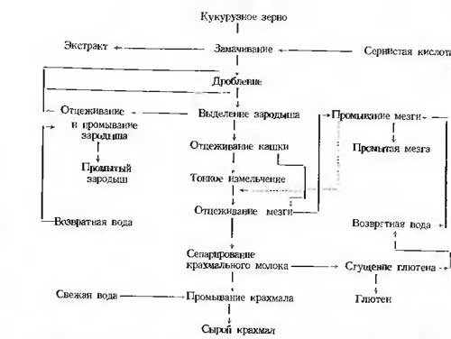 Производство кукурузного крахмала включает следующие основные технологические операция (схема):