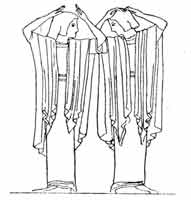 «Платья женщин были светлыми, созданными из лучших тканей. Они представляли собой свободные развевающиеся накидки длиной до лодыжек, которые иногда подпоясывали».
