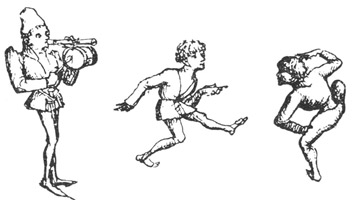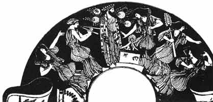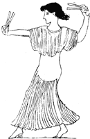 Трагедийный танец Эммелия (Emmelia) исполнялся очень торжественно, в то время как комедийный Кордакс (Cordax) был фривольным и даже непристойным, как танец сатиров. Аккомпанементом для них служила музыка барабанов, пастушеских рогов, дудочек, кастаньет и цимбал (рис. 14 , 15 , 16 ).