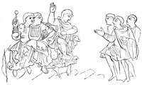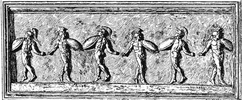 Пиррический танец (рис. 13 ) был привезен в Рим Юлием Цезарем из Азии. Там его исполняли дети влыдык Азии и Витинии.