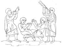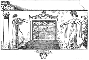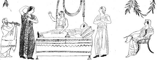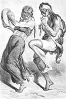 Как считает Герхардт (Gerhardt) [5 ], несомненно лишь то, что для этруссков танец был одним из символов радости, обретаемой человеком после смерти. Вот почему они хоронили своих усопших с музыкой и танцами. Аккомпанементом им служили звуки лир, деревянных и стальных дудочек, медных кастаньет. Все это видно на рисунках сохранившихся памятников.