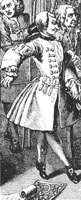 Держи голову и тело прямо, имей вид уверенный, плюй и кашлей немного, если появится необходимость, отвернись и используй красивый белый платок. Говори учтиво, благожелательно и с достоинством, не давай своим рукам безжизненно висеть, но и не жестикулируй чрезмерно. Будь одет чисто и опрятно ’avec la chausse bien tirée et Pescarpin propre.’