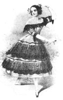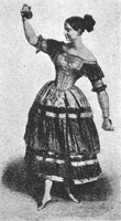 Мадемуазель Таглиони (рис. 64 ), не менее знаменитая, чем Дюверне, вышла замуж за графа Жильбера де Вуазана, французского дворянина, в 1847 году. Брак этот был удачен; к сожалению, большая часть этой удачи была потеряна во время Франко-Германской войны. Найдя в себе мужество, графиня вернулась в Лондон и давала уроки танцев, пользовавшиеся успехом. Благодаря этим урокам Дюверне обеспечила себе достойную жизнь. Она умерла в 1884 году в возрасте 80 лет.