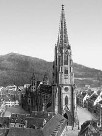 Порыв, столь же мощный, но при этом более сконцентрированный и потому неотразимо все себе покоряющий, — во Фрейбургском соборе, несравненном шедевре германской готики. В нем лишь одна башня, как бы заключившая в себе весь собор, слившись своим основанием с его фасадом, из которого она черпает великую силу, что дышит и в ажурном шатре, победно рвущемся к небу.