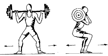 1. Приседания, выпрыгивания со штангой на одной или двух ногах с весами, упомянутыми выше.