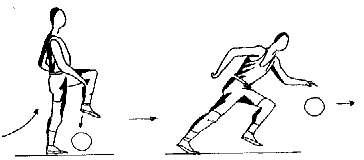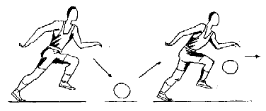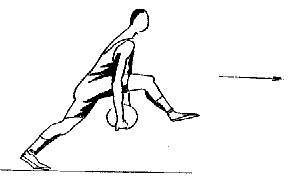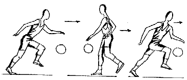 Бег с выбрасыванием прямых ног вперёд, переходящий в ускорение с ведением мяча