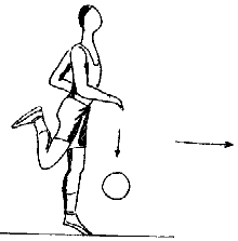 9. Бег на дистанцию 30-40 м с высоким подниманием бедра, переходящий в ускорение на такую же дистанцию. Это же упражнение можно выполнять с ведением одного или двух мячей.