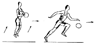 11. Бег с подскоками попеременно на левой и правой ноге на 30-40 м с переходом в ускорение на такую же дистанцию, с ведением и без ведения мяча.