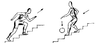 21. Максимально быстрый подъем и спуск по лестнице с учетом частоты движений. Проводится как соревнование двух-трех игроков на время -от 20 до 40 с.