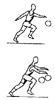 6. Низкие старты на дистанцию 5-10 м. Выполняются так же, как в упр. 5, но с ведением мяча.