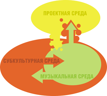 4. Музыкальная среда не влияет на проектную непосредственно: взаимодействие происходит через субкультурную «прослойку» – одной из задач работы является определение выше обозначенной «прослойки».