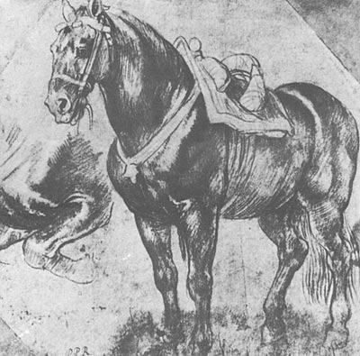 П. Рубенс. «Этюд оседланной лошади». Черный и белый мел, сангина. 1615–1618.