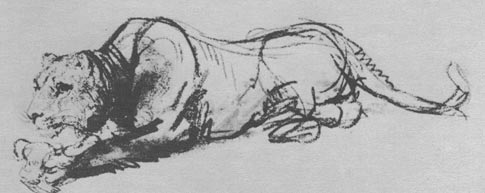 Рембрандт. «Лев, пожирающий кость». Сангина. 1641.