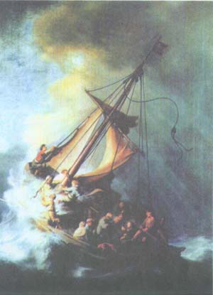 Число учеников, изображаемых в лодке, может быть различным: если художник опирается на Евангелие от Матфея, то учеников будет не двенадцать (Матфей, как уже отмечалось, помещает этот эпизод до призвания всех апостолов), если же учеников двенадцать, как у Рембрандта, значит, в основе изображения лежит рассказ Марка или Луки.