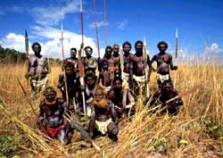 Большинство папуасов-мужчин (а мальчишки лет по 8-16 практически все) ходят постоянно с луком и стрелами, а также с большим ножом (с его помощью быстро выстругивают новые стрелы), и стреляют по всему, что движется (птица ли, зверь ли). Реакция у папуасов просто великолепная.