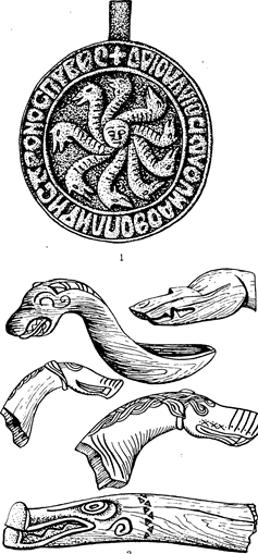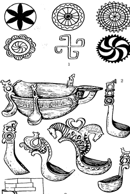 пересекает Океан на ладье, запряжённой водоплавающими птицами — гусями, утками, лебедями. Поэтому наши предки приписывали особую силу оберегам (это слово происходит от глагола "беречь", "оберегать" и обозначает амулет, талисман) в виде утки с головой коня. Они верили, что Бог Солнца поможет им, где