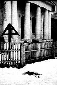 Могила иеросхнмонаха Иоанна (Малиновского). На заднем плане - храм Иоанна Предтечи,