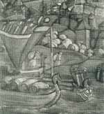 Самое большое панно - "Садко". Его длина - 7 метров. Садко не богатырь. Он не совершал воинских подвигов. В былинах повествуется о нем как о певце, гусляре, пленившем царя морского, а также как о богатом купце новгородском. Отсюда - двойственный характер былины - фантастический и совершенно реалистический. Если предшественников Рериха обычно интересовала сказочная сторона былины, то сам он выбирает ее реалистический аспект. Весело плывут по синим водам Волхова ладьи Садко. Он отправляется со своей дружиной в далекий путь. На берегу раскинулся "Господин Великий Новгород" с крепостными стенами и башнями. На пристани слева дружно разгружаются торговые ладьи. Рерих рисует, по существу, идеальную картину жизни богатого торгового города, гдо нет распрей и где все трудятся на общее благо.