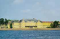 ский дворец. Среди петербургских работ Кваренги - здание Академии наук, ансамбль Ассигнационного банка, Серебряные ряды, Эрмитажный театр и галерея, Георгиевский и Аполлонов залы в Зимнем дворце, Конногвардейский манеж, Кабинет при Аничковом дворце, Мариинская больница на Литейном проспекте, Смольный институт. Считают, что автором Елагина дворца на Елагином острове, построенного в 1780-х гг., также был Кваренги. Главный фасад этого здания украшает портик коринфского ордера, лестница с пандусом и чугунными львами. В 1812-1822 гг. К. Росси перестроил Елагин дворец, оформил его парадные интерьеры.