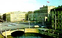 С востока его граница определена Лебяжьим каналом, с юга - рекой Мойкой, с запада Марсово поле оформляет грандиозное здание казарм Павловского полка (арх. В.Стасов, 1817-1819). Казармы Павловского полка - монументальный памятник победам русской гвардии - одно из совершенных сооружений русского классицизма начала XIX в.
