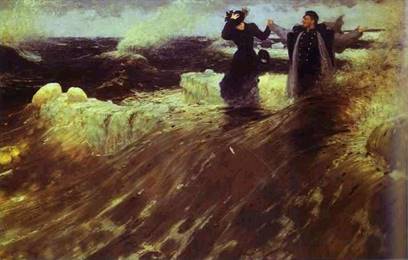 Совершенно справедливо осознавая себя продолжателем реалистических традиций XIX века, Репин, однако, в ряде работ не остается чуждым тех форм и способов художественной типизации действительности, которые несло с собою новое время, новое творческое мышление. Глядя на его картину «Какой простор!» (1903) (приложение № 6) , зрители не без основания увидели в ней не столько изображение прогулки двух молодых людей по берегу Финского залива - таково было буквальное содержание представленной сцены, - сколько желание автора передать свое ощущение грядущего.