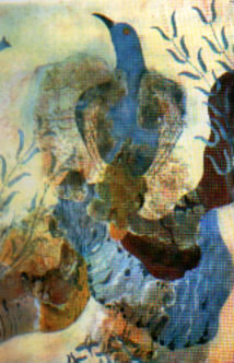 В другой знаменитой фреске из дворца в Тиринфе – «Орфей» – заметно несоответствие маленькой фигуры музыканта и огромной тяжеловесной птицы. Могучий летящий голубь кажется фантастическим гигантом, музыкант же мал и беспомощен. Реальные соразмерности вещей нарушены из-за их смыслового неравенства. Голубь, очевидно воплощающий небесное божество (Афродиту, как позднее у эллинов), для художника значительно важнее смертного человека. Диспропорции такого рода тем более заметны, что в росписи отсутствует природная среда – тот пейзаж, полный звуков и запахов трав, который был так любим в искусстве критян. Нейтральный одноцветный фон, на котором разворачивается сюжет, остается немым и непроницаемым. Персонажи росписи – охотники или воины, герои новых, микенских тем, отсутствовавших у минойцев, показаны неловкими, застывшими.