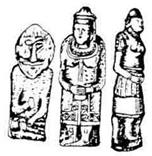 – каменные изваяния человека (воинов, женщин). Каменная баба составляла с курганом неразрывное целое и создавалась с расчетом на высокий земляной пьедестал, на обзор со всех сторон самых отдаленных точек.