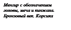 Наиболее сложные сооружения – мегалитические погребения[8] , то есть погребения в гробницах, сооруженных из больших камней, - дольмены, менгиры. В Западной Европе и на юге России распространены дольмены[9] .Некогда на северо-западе Кавказа дольмены исчислялись сотнями.