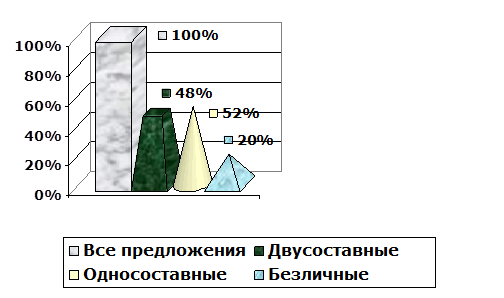 Проанализировав диаграмму можно сделать вывод, что М.Ю. Лермонтов употреблял безличные предложения чаще, чем другие односоставные предложения.