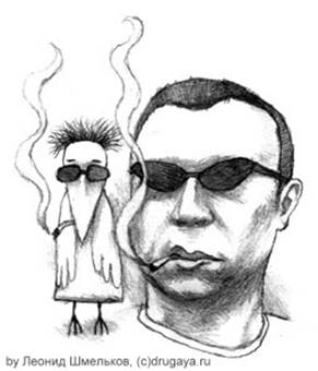 Почти во всех книгах Пелевина герои поедают наркотические грибы или нюхают кокаин. "Он меня звал в гости, говорил: я сейчас такой составчик сделаю, будет такой улет, - вспоминает Виктория Шохина. - Он называл все точными химическими или медицинскими терминами: барбитураты там, еще что-то. У него все время витали в разговорах словечки "трип", "глюк". Сейчас корабли подойдут, подъедет мой кореш, принесет косячок. Для чего это ему нужно? Это было для меня достаточно очевидно - для расширения сознания. Он не кололся никогда. В основном это были таблетки или трава".