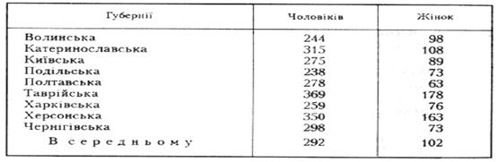 В українських губерніях на 1000 душ всього населення припадало грамотних: