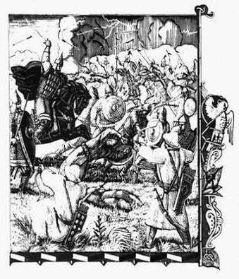 На следующий день, с рассветом, половецкие полки, "ак борове", то есть подобно лесу, стали неожиданно наступать на русских. Игорь не поворотил полки.