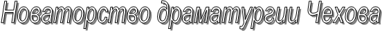 Исследовав тему «Новаторство драматургии Чехова» я пришла к выводу, что Чехов действительно был новатором не только в русской, но и мировой драматургии. Именно в этом, на мой взгляд, секрет его популярности не только в России, но и на Западе.