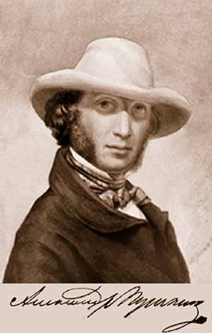 Пушкин (Александр Сергеевич) - величайший русский поэт, родился 26 мая 1799 года, в четверг, в день Вознесения Господня, в Москве, на Немецкой улице. О своих предках по отцу он пишет в 1830 - 1831 годах: "Мы ведем свой род от прусского выходца Радши или Рачи (мужа честна, говорит летописец, т. е. знатного, благородного), въехавшего в Россию во время княжения св. Александра Ярославича Невского... Имя предков моих встречается поминутно в нашей истории. В малом числе знатных родов, уцелевших от кровавых опал царя Иоанна Васильевича Грозного, историограф именует и Пушкиных. Григорий Гаврилович (ошибка: надо читать Гаврило Григорьевич) Пушкин принадлежал к числу самых замечательных лиц в эпоху самозванцев. Другой Пушкин, во время междуцарствия, начальствуя отдельным войском, один с Измайловым, по словам Карамзина, сделал честно свое дело. Четверо Пушкиных подписались под грамотой об избрании на царство Романовых, а один из них, окольничий Матвей Степанович - под соборным деянием об уничтожении местничества (что мало делает чести его характеру). При Петре Первом сын его, стольник Федор Матвеевич, уличен был в заговоре против государя и казнен вместе с Цыклером и Соковниным. Прадед мой, Александр Петрович, был женат на меньшой дочери графа Головина, первого андреевского кавалера. Он умер весьма молод, в припадке сумасшествия зарезав свою жену, находившуюся в родах. Единственный сын его, Лев Александрович, служил в артиллерии и в 1762 году, во время возмущения, остался верен Петру III. Он был посажен в крепость, где содержался два года. С тех пор он уже в службу не вступал, а жил в Москве и в своих деревнях. Дед мой был человек пылкий и жестокий. Первая жена его, урожденная Воейкова, умерла на соломе, заключенная им в домашнюю тюрьму за мнимую или настоящую ее связь с французом, бывшим учителем его сыновей, и которого он весьма феодально повесил на черном дворе. Вторая жена его, урожденная Чичерина, довольно от него натерпелась. Однажды он велел ей одеться и ехать с ним куда-то в гости. Бабушка была на сносях и чувствовала себя нездоровой, но не смела отказаться. Дорогой она почувствовала муки. Дед мой велел кучеру остановиться, и она в карете разрешилась чуть ли не моим отцом. Родильницу привезли домой полумертвую и положили на постель всю разряженную и в бриллиантах. Все это знаю я довольно темно. Отец мой никогда не говорил о странностях деда, старые слуги давно перемерли" (изд. литературного фонда, V, 148 - 149). Отец поэта, Сергей Львович (1771 - 1848), как и старший брат его, поэт Василий Львович (1770 - 1830), не имел по характеру ничего общего с дедом. Получив блестящее по тому времени образование, т. е. овладев не только французской прозаической речью, но и стихом, и поглотив все выдающееся во французской литературе XVII и XVIII веков, он на всю жизнь сохранил страсть к легким умственным занятиям и к проявлению остроумия и находчивости во всяких jeux de societe; за то также всю жизнь он оказывался неспособным к практическому делу. Он был в малолетстве записан в Измайловский полк, потом при Павле переведен в гвардейский егерский и очень тяготился несложными обязанностями гвардейского поручика. Женившись в ноябре 1796 года, он подал в отставку и стал пользоваться совершенной свободой, сперва в Петербурге, где 20 декабря 1797 года родился у него первый ребенок - дочь Ольга (впоследствии Павлищев