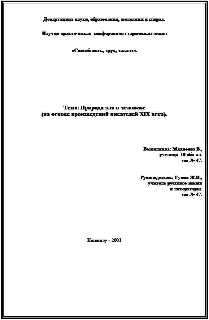 Реферат: Природа зла в человеке