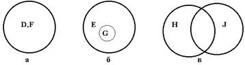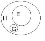 Здесь изображен типичный пример совместимых подчиненных понятий, где объем понятия, видового ( G ) и (Е) - является частью объема другого - родового (Н) . А между собой эти понятия ( G и Е) являются соподчиненными