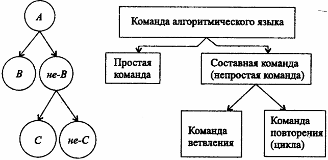 “Почвы делятся на черноземные и нечерноземные”; “Грибы делятся на съедобные и несъедобные”. Иногда понятие не-А снова делится на В и не-В, затем не-В делится на С и не-С и т. д. Схема и пример дихотомического деления даны на рис. 6, 7.