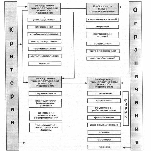 Задача выбора вида транспорта решается во взаимной связи с другими задачами логистики, такими, как создание и поддержание оптимального уровня запасов, выбор вида упаковки и др. Основой выбора вида транспорта, оптимального для конкретной перевозки, служит информация о характерных особенностях различных видов транспорта. Рассмотрим основные преимущества и недостатки автомобильного, железнодорожного, водного и воздушного транспорта, существенные с точки зрения логистики.