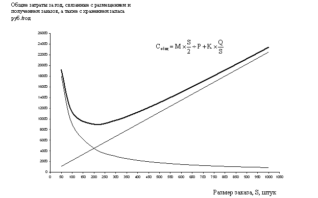 Критерием оптимума является минимум общих затрат за период, связанных с созданием и содержанием запаса.