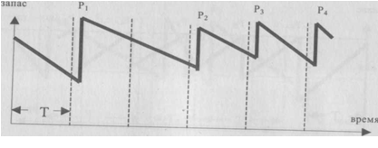 Период, через который предприятие направляет заказ поставщику, не меняется. Например, каждый понедельник менеджер фирмы просматривает остатки товаров и дозаказывает их заранее до определенной максимальной нормы.