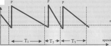 Система пополнения запаса до максимального уровня. При этом через равные промежутки времени заказывается партия, объем которой, т. е. число единиц товара, равен разности установленного максимального уровня запасов и фактического уровня запасов на момент проверки. Размер заказа увеличивается на величину запаса, который будет реализован за период выполнения заказа (рис. 7).