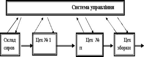 Матеріальний потік "виштовхується" одержувачеві по команді, що поступає на передавальну ланку з центральної системи управління виробництвом (мал. 1).