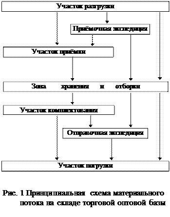 Принципиальная схема материальных потоков на складе оптовой торговой базы приведена на рисунке 1.