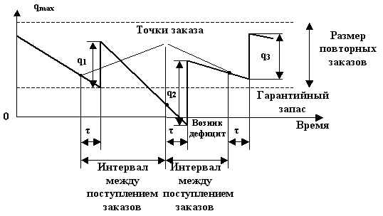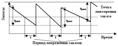 - возникновение опасности исчерпания запасов при непредвиденном интенсивном их потреблении до наступления очередного момента заказа.