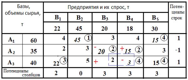 3. Решить задачу методом потенциалов